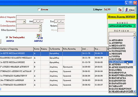 η επιλογή "Αφετηρία=<__/__/____". Δίνοντας μια ημερομηνία, εμφανίζονται όλοι οι καθηγητές με αφετηρία πριν την ημερομηνία αυτή.