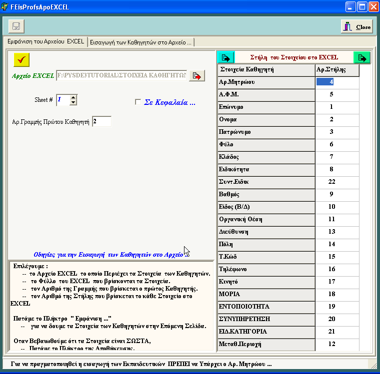 - Εισαγωγή ΚΑΘΗΓΗΤΩΝ από αρχείο EXCEL