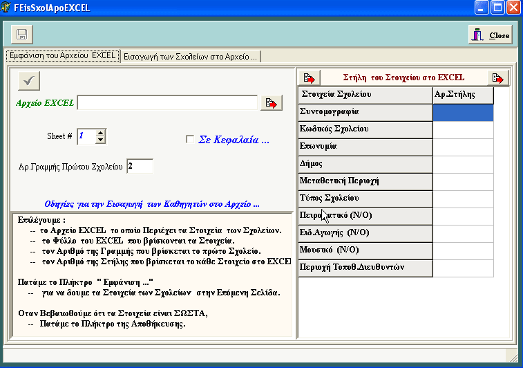 - Εισαγωγή ΣΧΟΛΕΙΩΝ από αρχείο EXCEL
