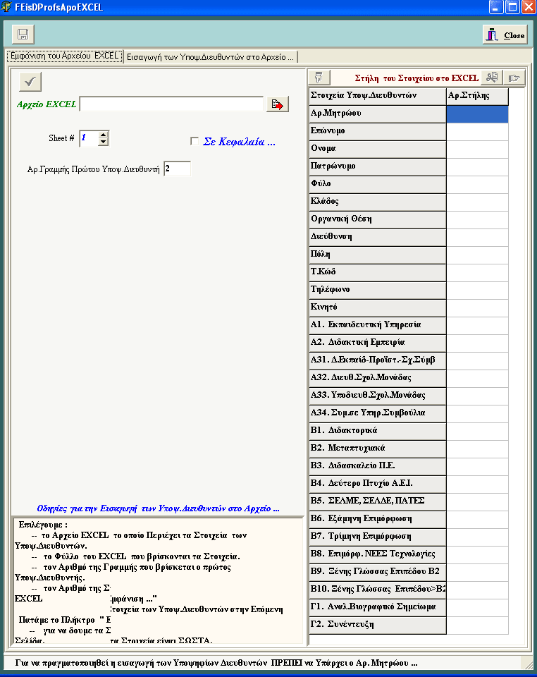 - Εισαγωγή ΥΠΟΨΗΦΙΩΝ ΔΙΕΥΘΥΝΤΩΝ από αρχείο EXCEL
