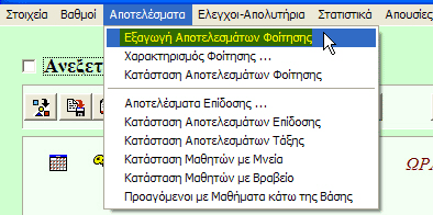 Εξαγωγή ΑΠΟΤΕΛΕΣΜΑΤΩΝ ΦΟΙΤΗΣΗΣ